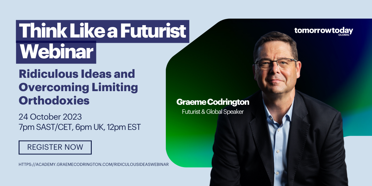 Join futurist and strategist, Graeme Codrington, for a one-hour webinar / conversation on how to apply the Ridiculous Ideas way of thinking to the work that you and your team do.